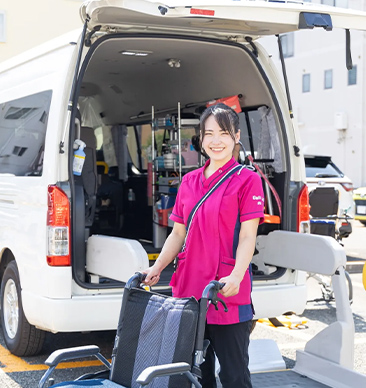 私たちは看護関連の業務で約12年の経験を積んでおり、食事やおむつの介助はもちろん、酸素吸入や吸引対応などもお任せいただけます。看護の現場で培った独自の視点と対応力を活かし、お客様がより安心で快適に過ごしていただけるよう、安全対策にも細心の注意を払っております。当社はお客様の安全と満足を最優先に考え、心地よい送迎サービスをご提供いたします。
